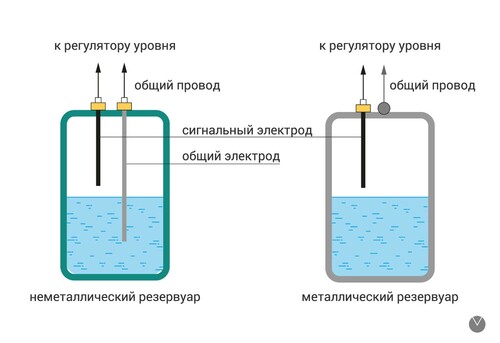 Рис. 3. Применение кондуктометрических датчиков уровня