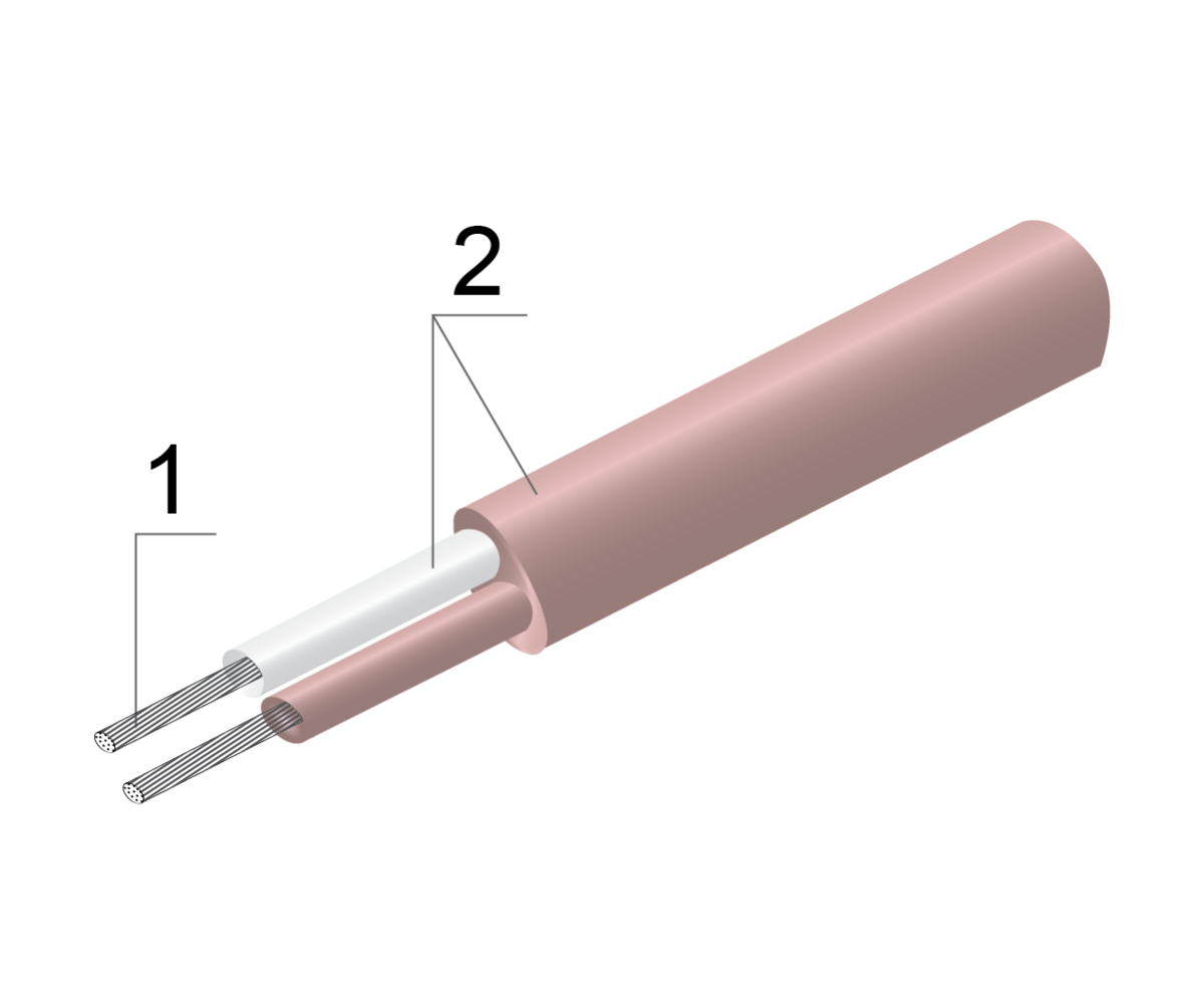 1 – термоэлектродная проволока 2 – cтеклонить К11С6 с пропиткой кремнийорганическим лаком |