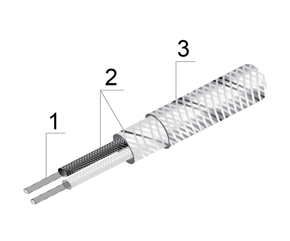 1 – термоэлектродная проволока 2 – стекловолокно 3 – экран (сталь AISI 304) |