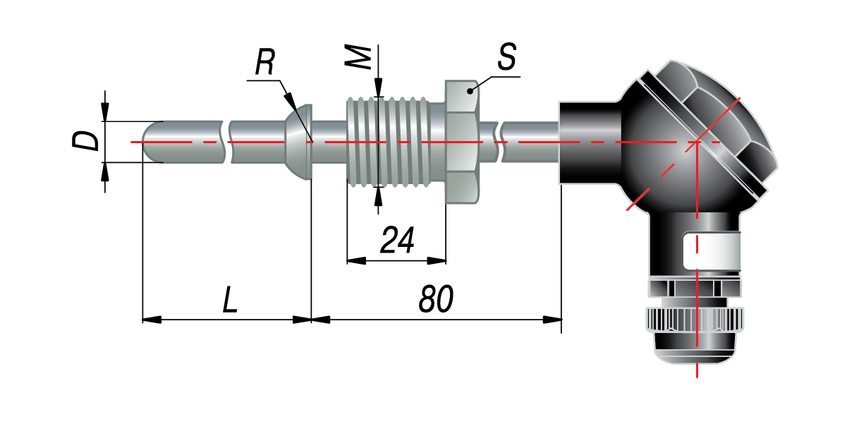 - Исполнение с термоэлектродами диаметром 1,2 мм и металлической коммутационной головкой возможно только для моделей с диаметром монтажной части 10 мм: 025, 045, 075, 185, 195, 205 и 215.