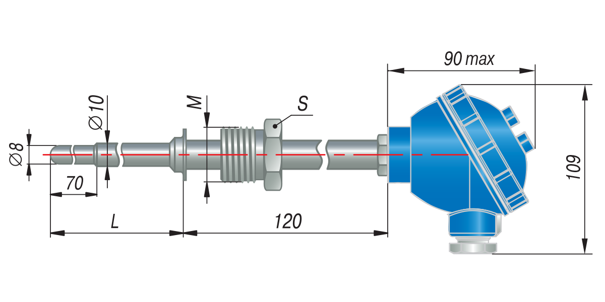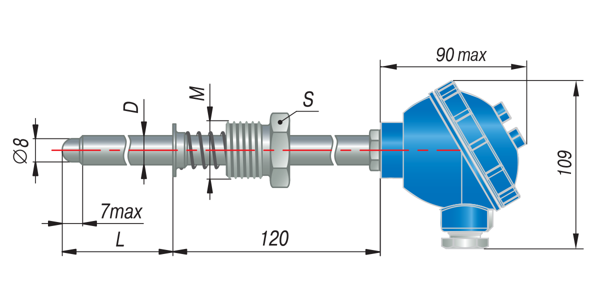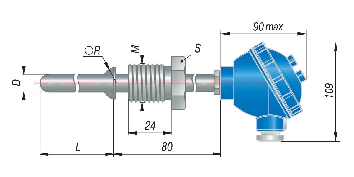 ** – По спец. заказу возможно изготовление датчика с трубной резьбой.
