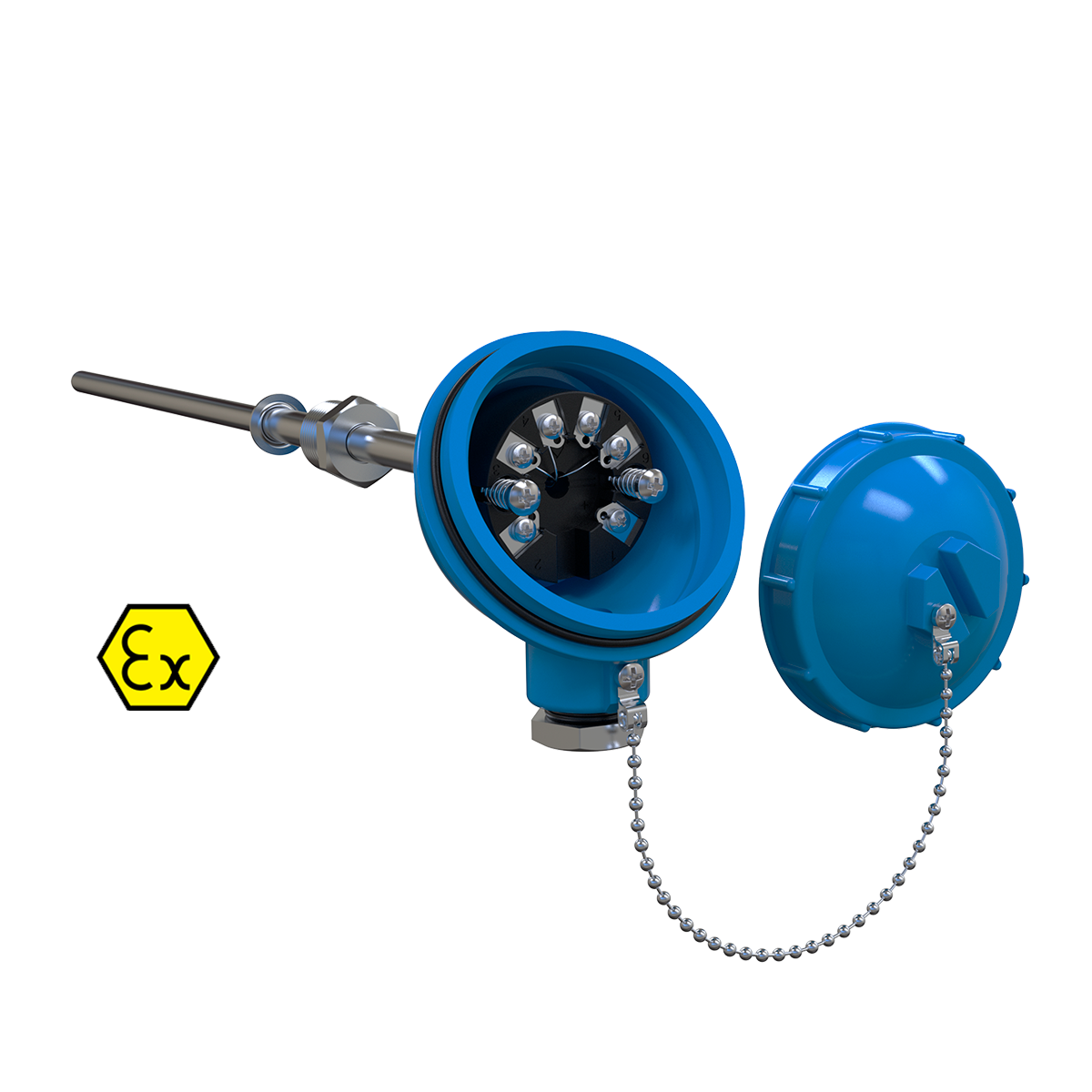 Термопары с выходным сигналом 4…20 мА ДТПКхх5Е, ДТПNхх5Е имеют вид взрывозащиты «искробезопасная электрическая цепь» и предназначены для установки и работы во взрывоопасных зонах помещений и наружных установок согласно главе 7.3 ПУЭ и другим нормативным документам, регламентирующим применение электрооборудования во взрывоопасных условиях.