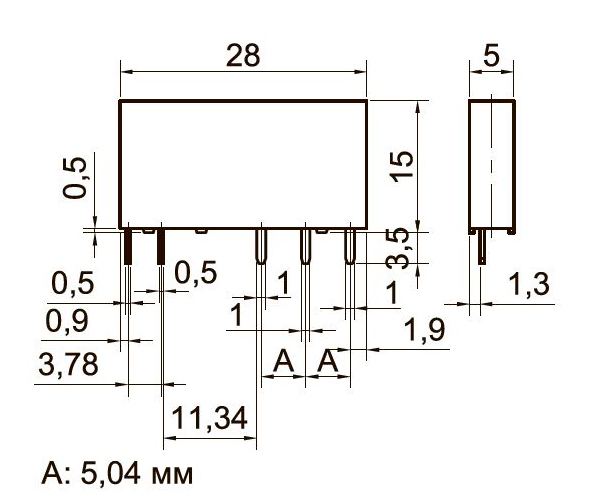 - Универсальный монтаж на ДИН-рейку и печатную плату расширяет сферы применения реле серии SR;