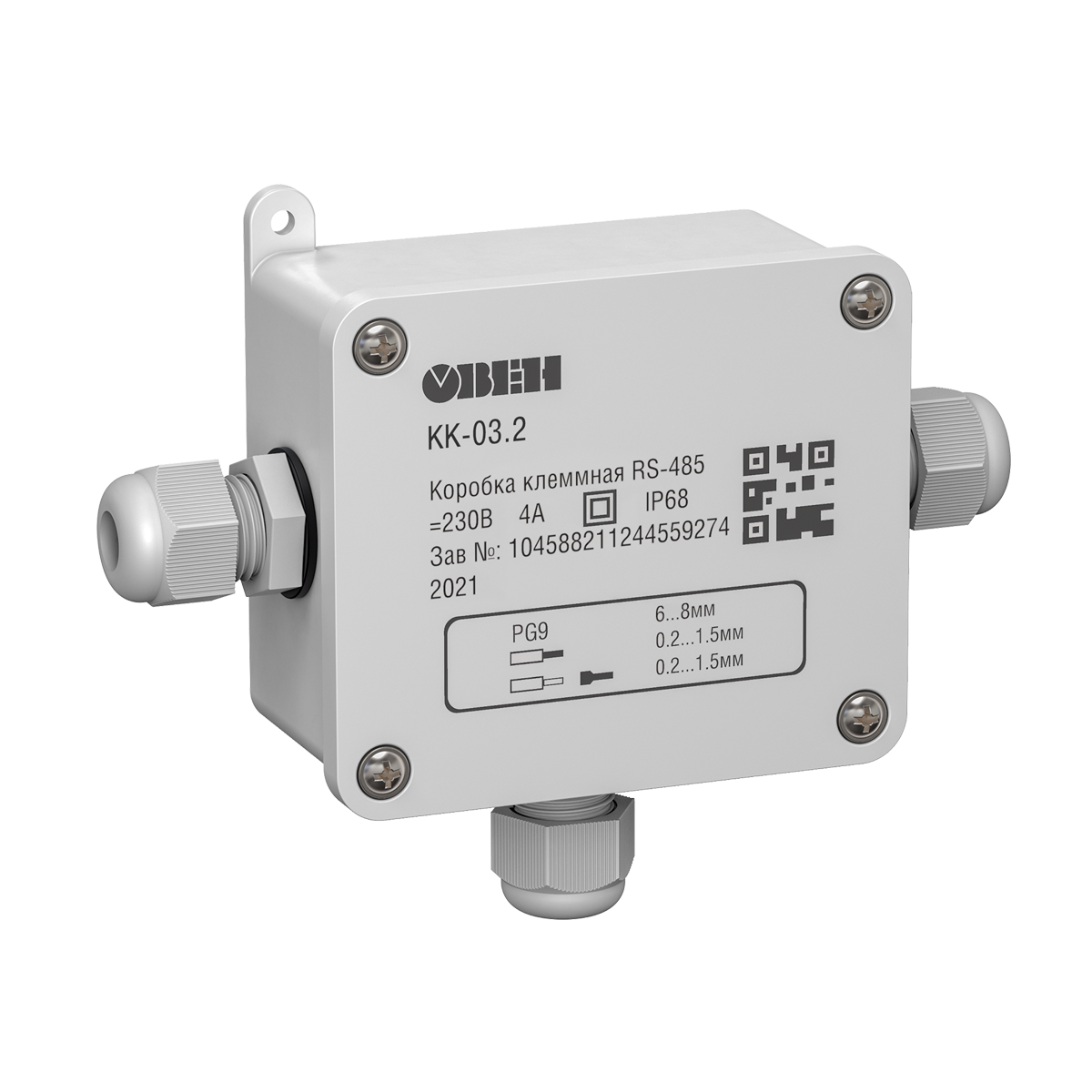 КК-03 предназначена для разветвления кабелей интерфейса RS-485, а также сетей 230 В с номинальными токами не более 4 А на предприятиях различных отраслей промышленности и сельского хозяйства.