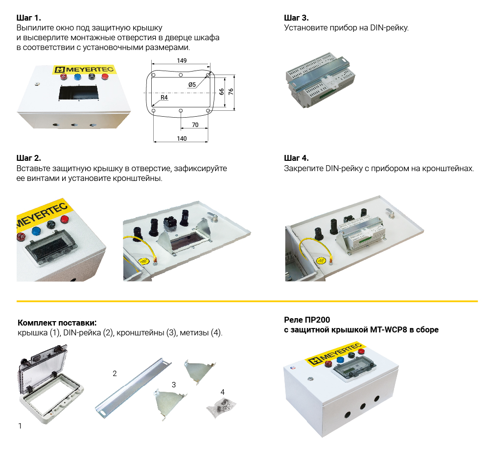 Защитные крышки MT-WPС12 предназначены для установки приборов в автоматном корпусе на дверце шкафа управления. Крышки обеспечивают визуальный контроль работы прибора, возможность его настройки и управления.