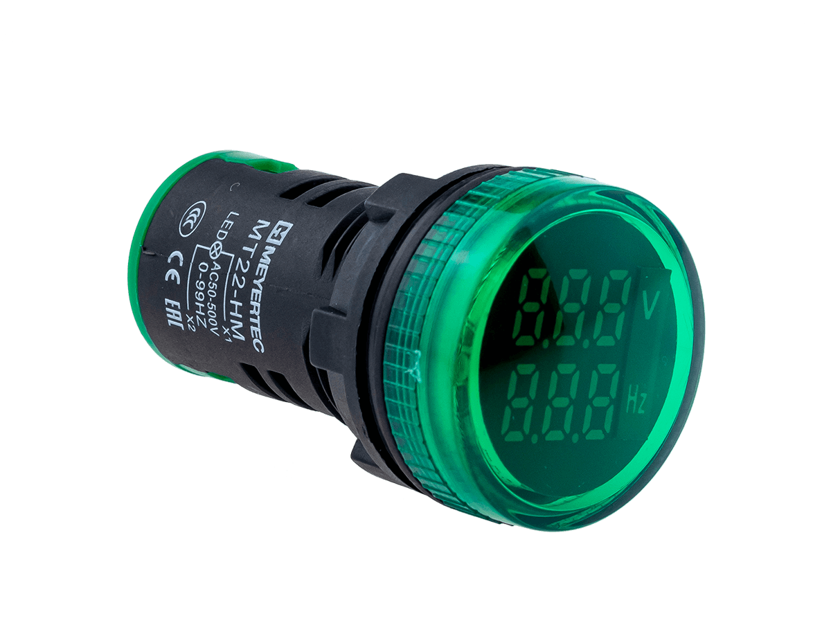Цифровые индикаторы MT22-HM3 применяются для отображения действующих значений напряжения и частоты сети. Используются в качестве альтернативы светосигнальным лампам 22 мм при контроле питания и нагрузки в шкафах автоматики или распределительных шкафах.