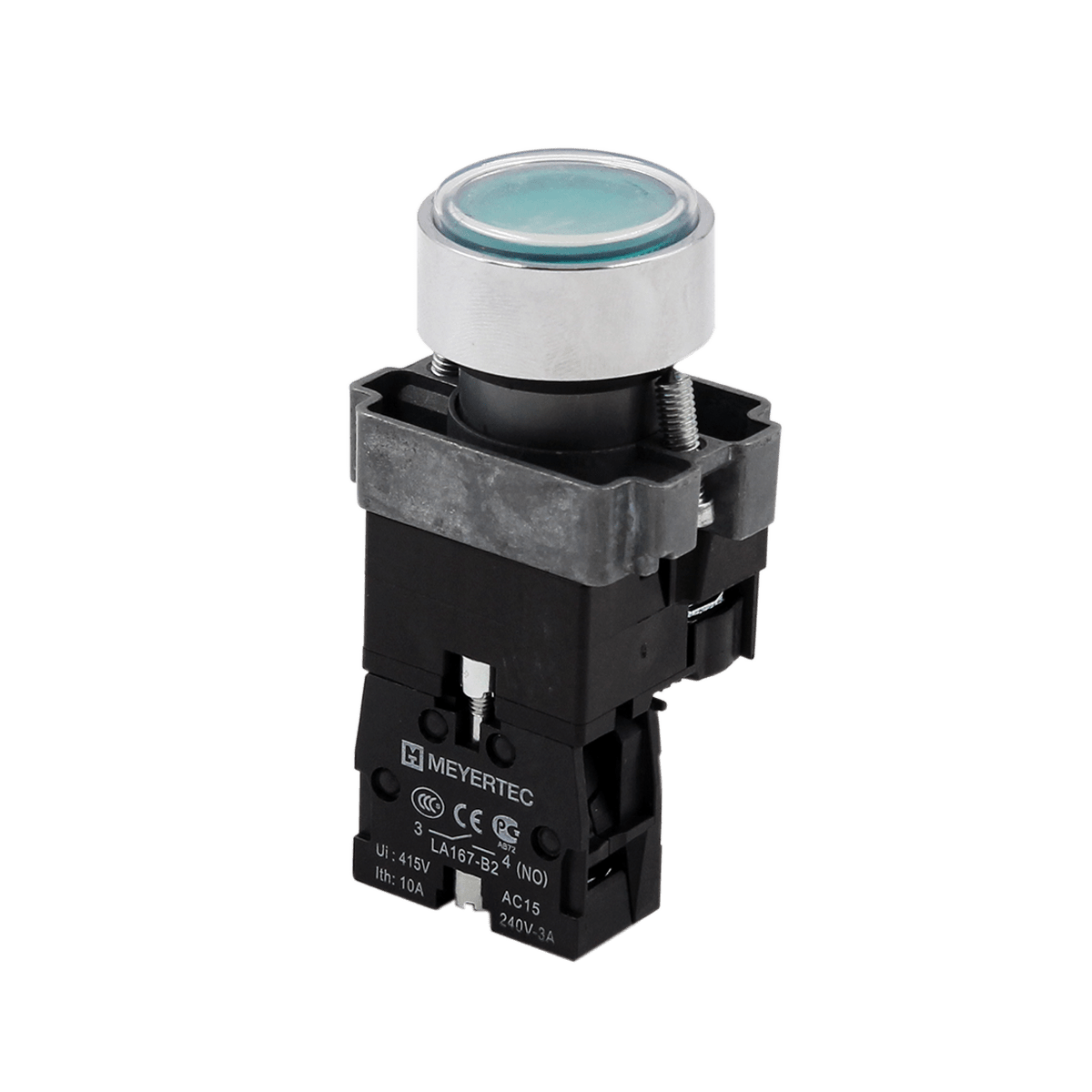 Кнопки MTB2-BWF3361 со степенью защиты IP67 предназначены для управления электромагнитными контакторами, пускателями, реле и другими вторичными цепями. Кнопки выполнены в высоком пыле- и влагозащищенном исполнении с ударопрочностью IK07.