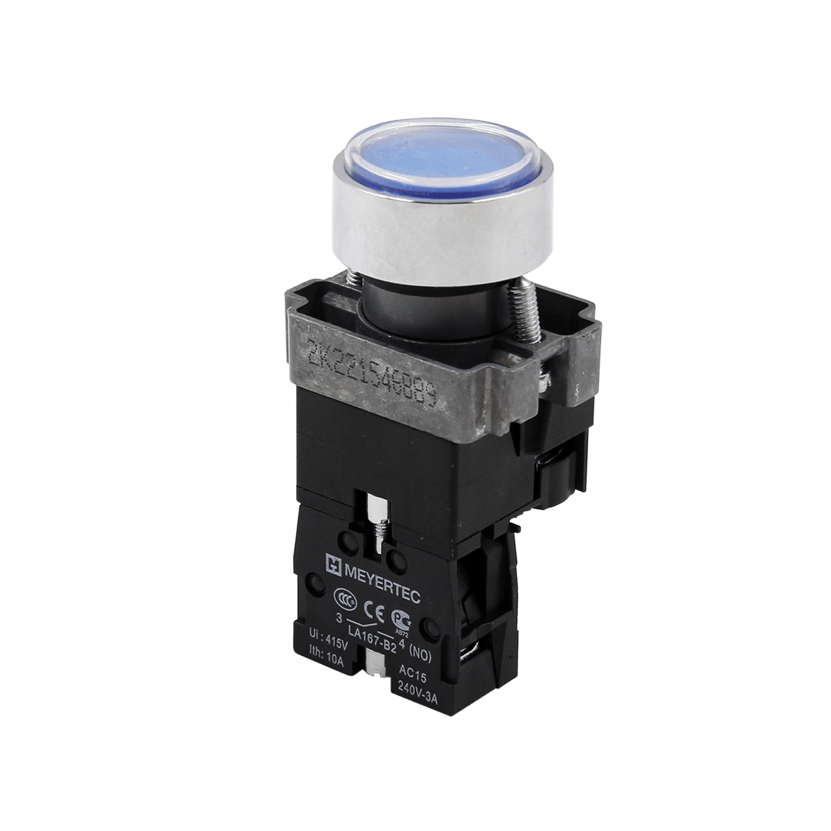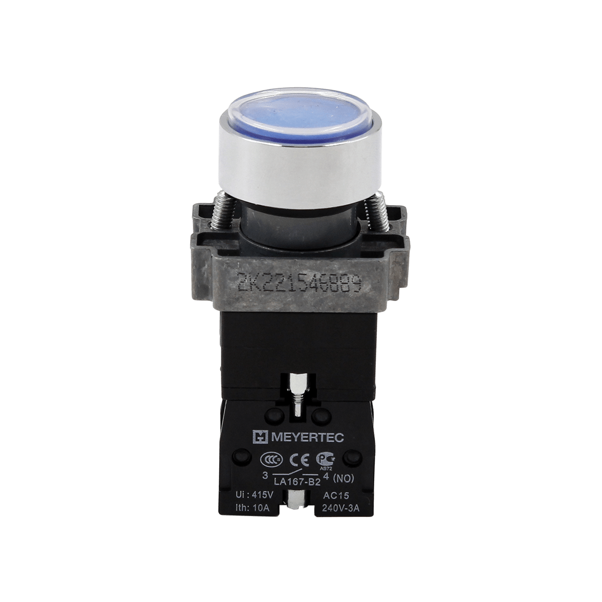 Кнопки MTB2-BWF3671 со степенью защиты IP67 предназначены для управления электромагнитными контакторами, пускателями, реле и другими вторичными цепями. Кнопки выполнены в высоком пыле- и влагозащищенном исполнении с ударопрочностью IK07.