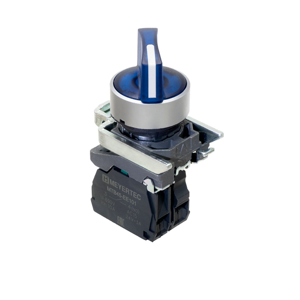 Переключатель для шкафа управления серии MTB4 с установочным диаметром 22 мм применяется в электрических цепях с переменным (до 690 В)/постоянным (до 400 В) напряжением и частотой тока 50/60 Гц.