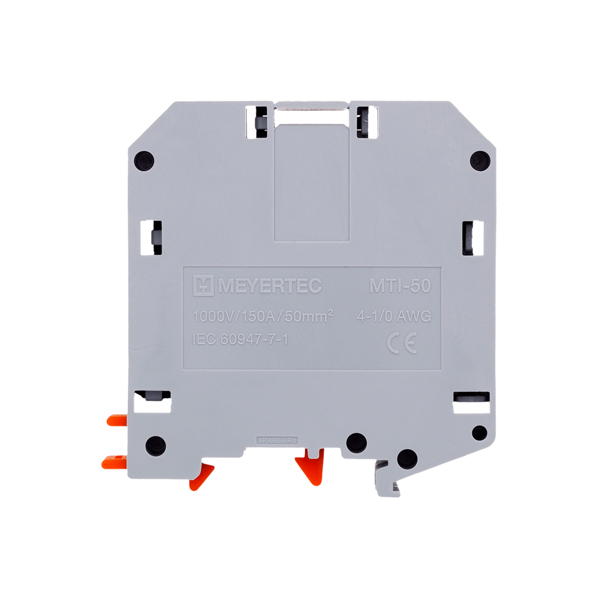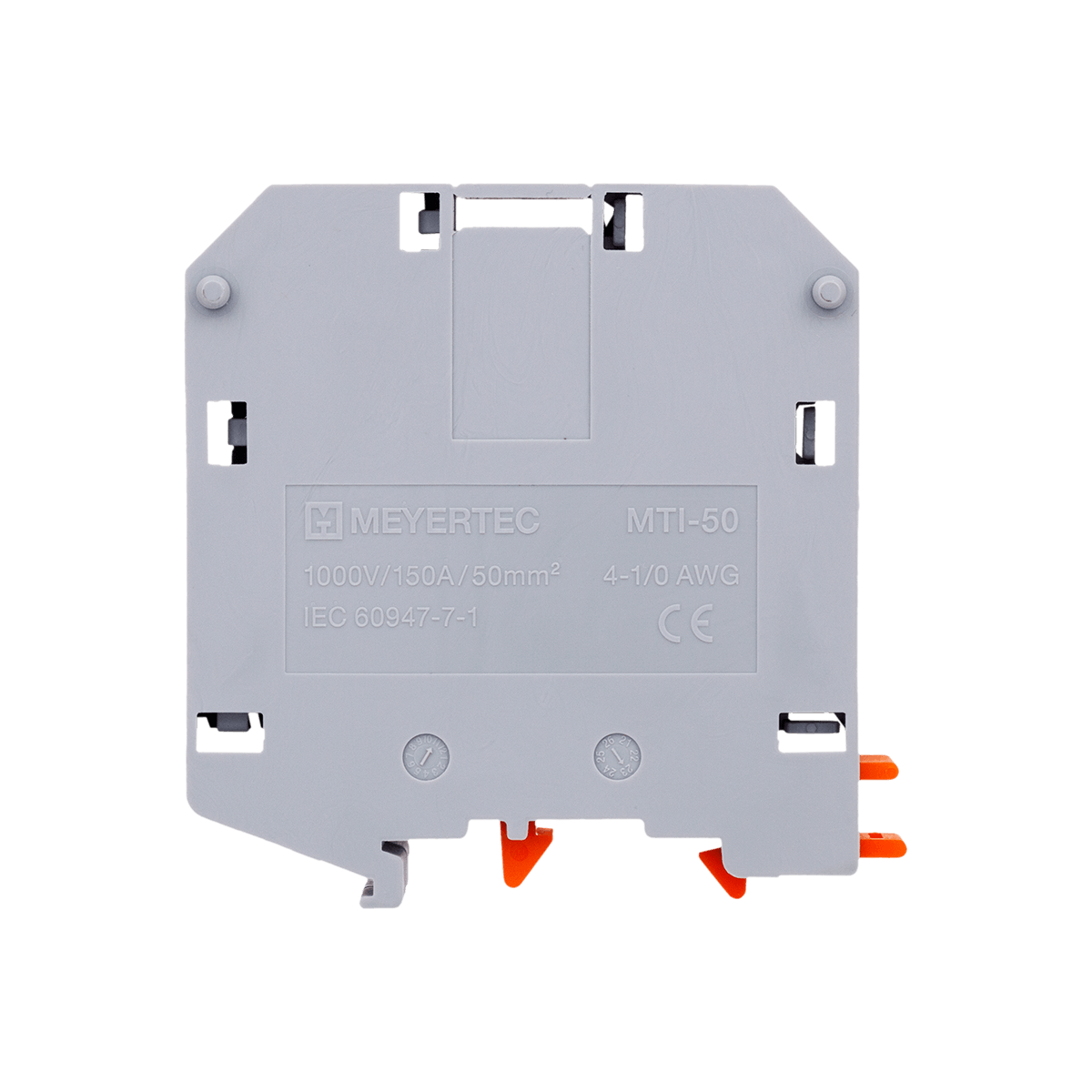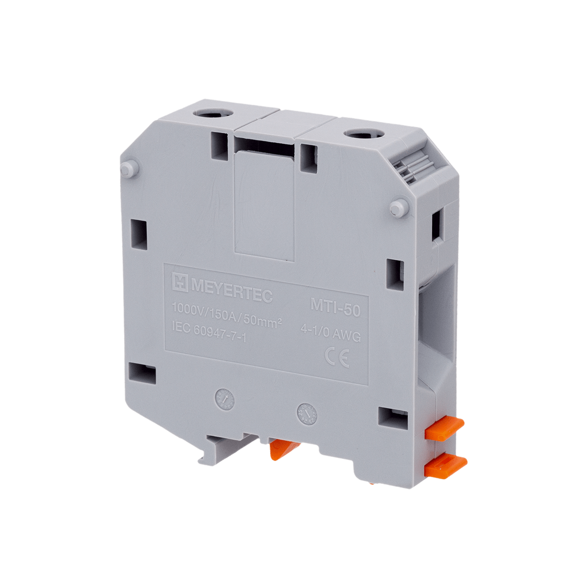 Силовые клеммы MTI-50 предназначены для подключения проводников большого сечения при вводе в электротехнический шкаф, а также для распределения отводящих проводников (линий, фаз) внутри сборочного шкафа (щита). Встроенные винтовые зажимы позволяют достичь надёжного контакта для передачи электроэнергии.