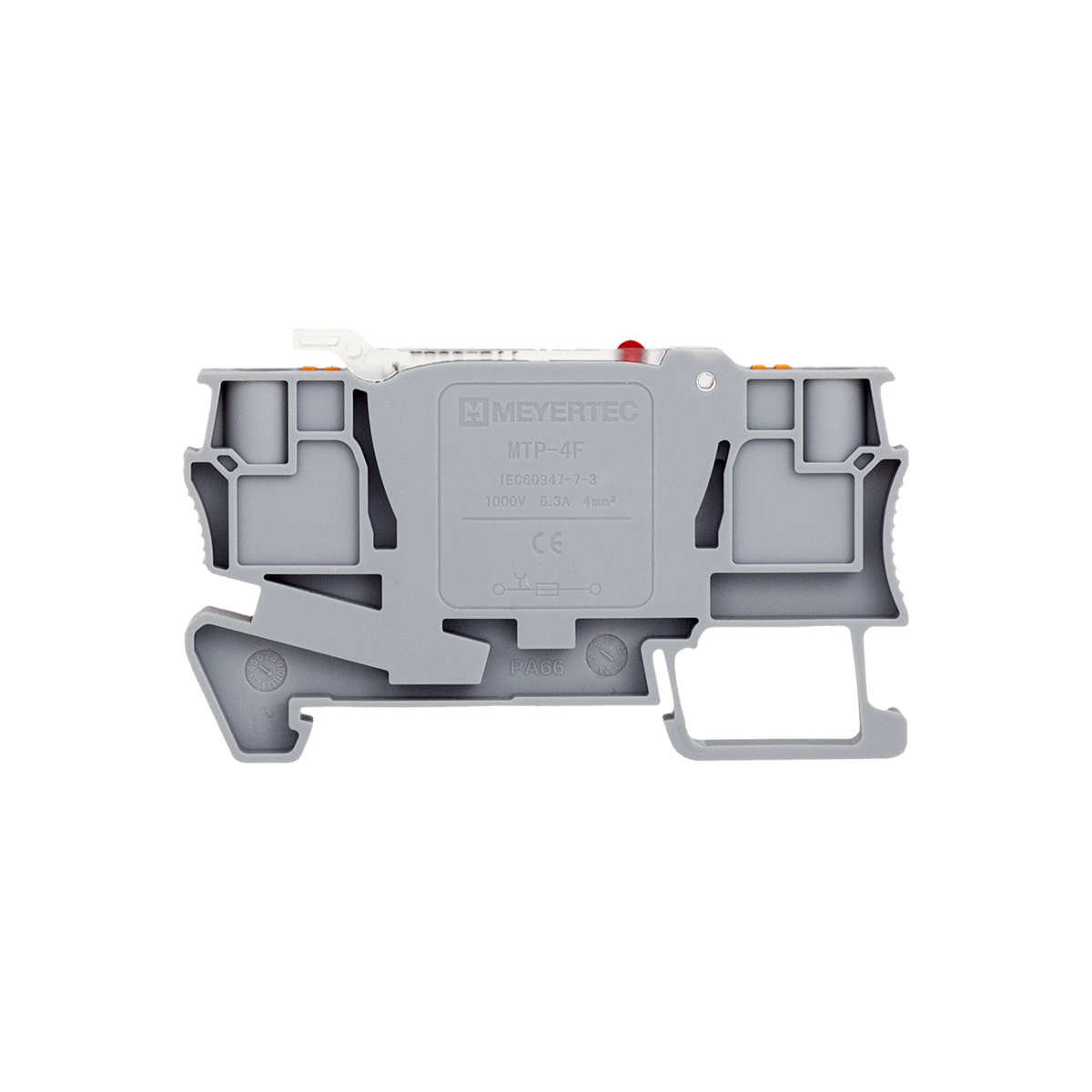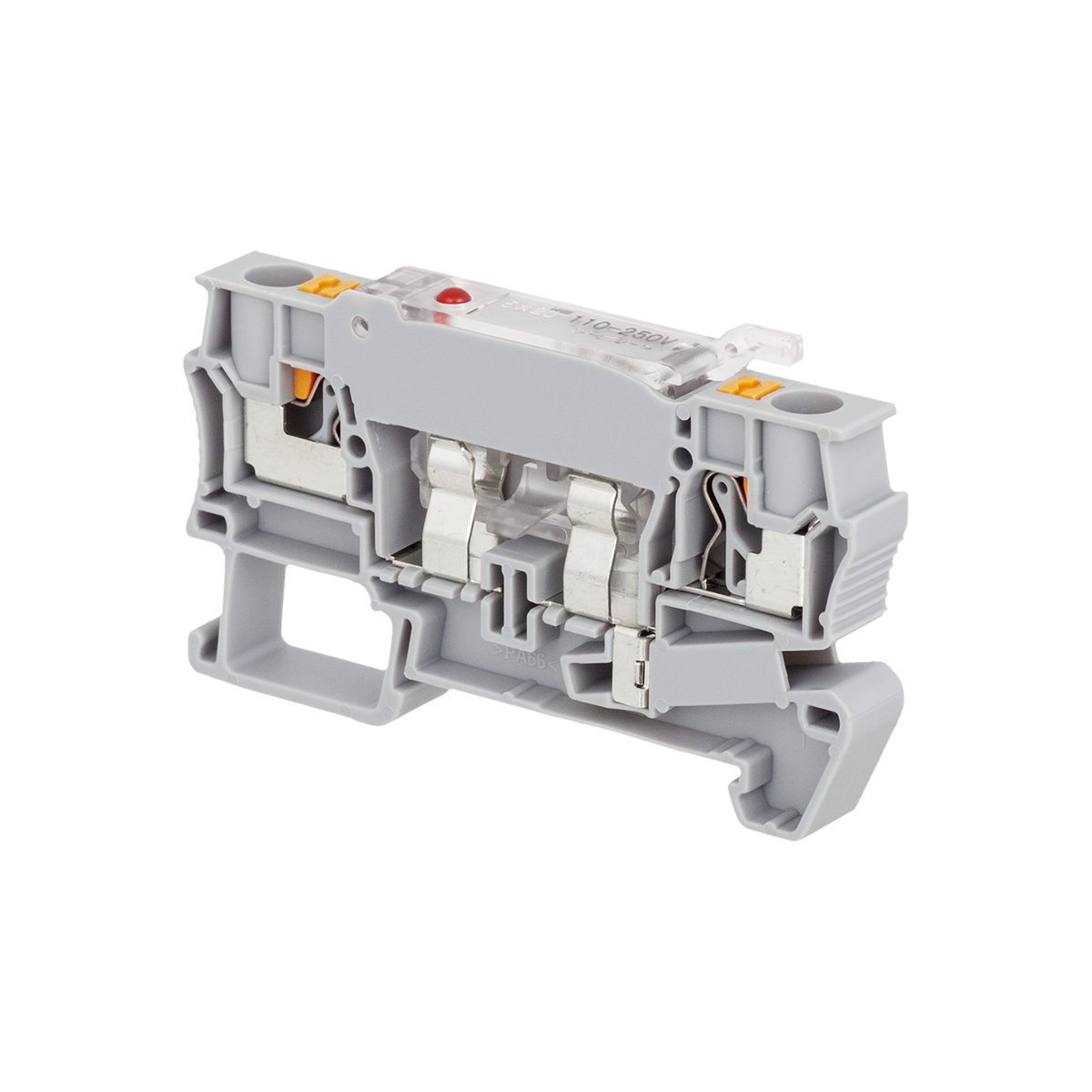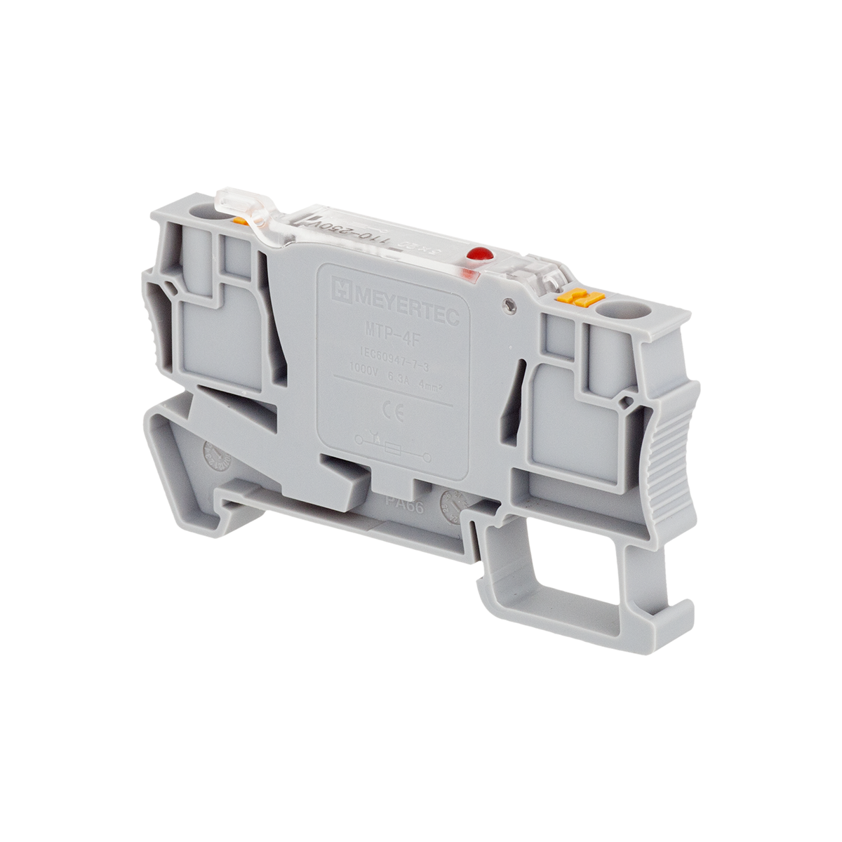 Клеммы push-in MTP-4F220 c держателем предохранителя устанавливаются в шкафах автоматики для защиты вторичных цепей от перегрузки и коротких замыканий. Данная модификация имеет светодиодную индикацию, которая информируют о перегорании предохранителя.
