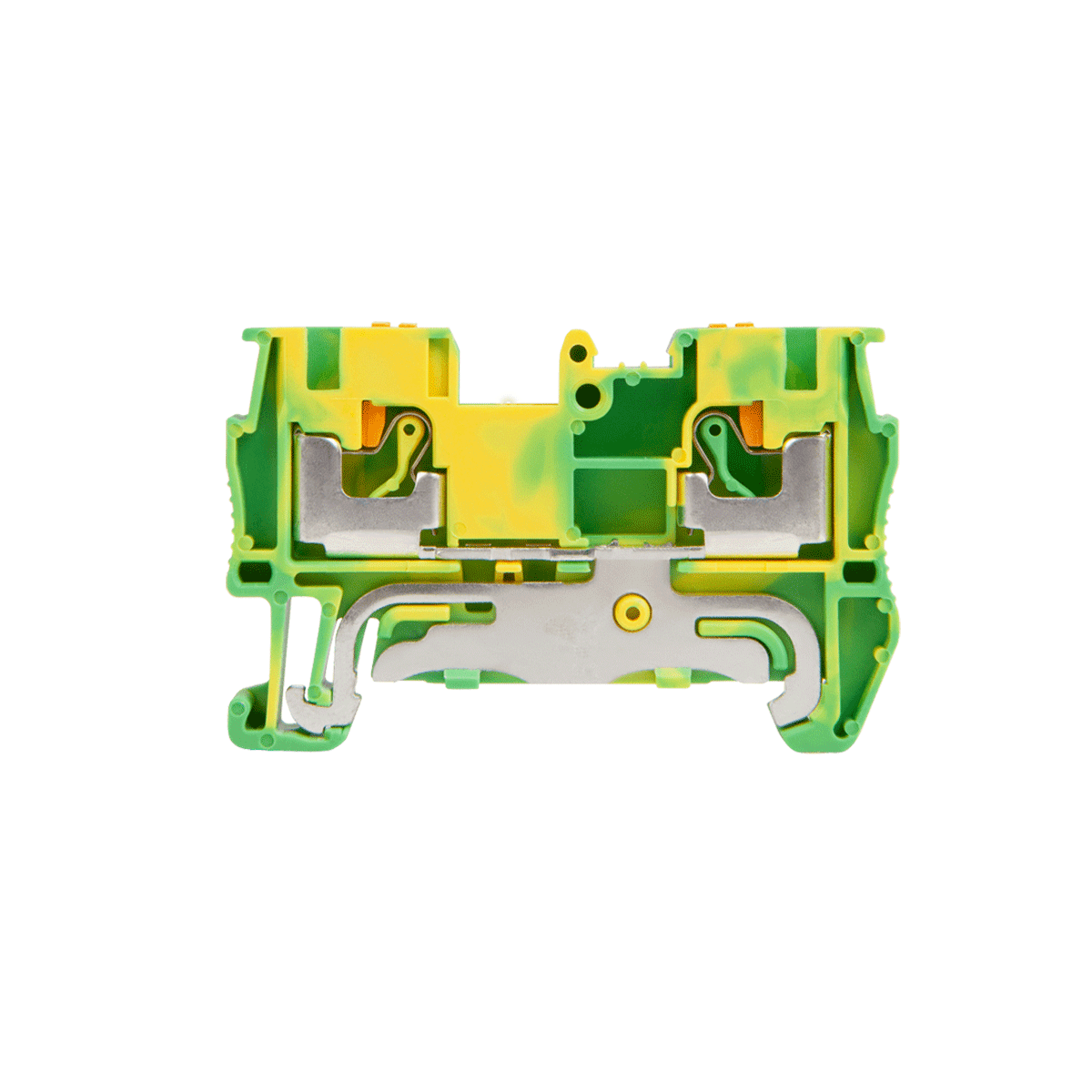 Клеммы push-in «Земля» MTP-4PE применяются для подключения защитных заземляющих проводников. Клемма фиксируется на DIN-рейке простым защелкиванием без использования инструментов.
