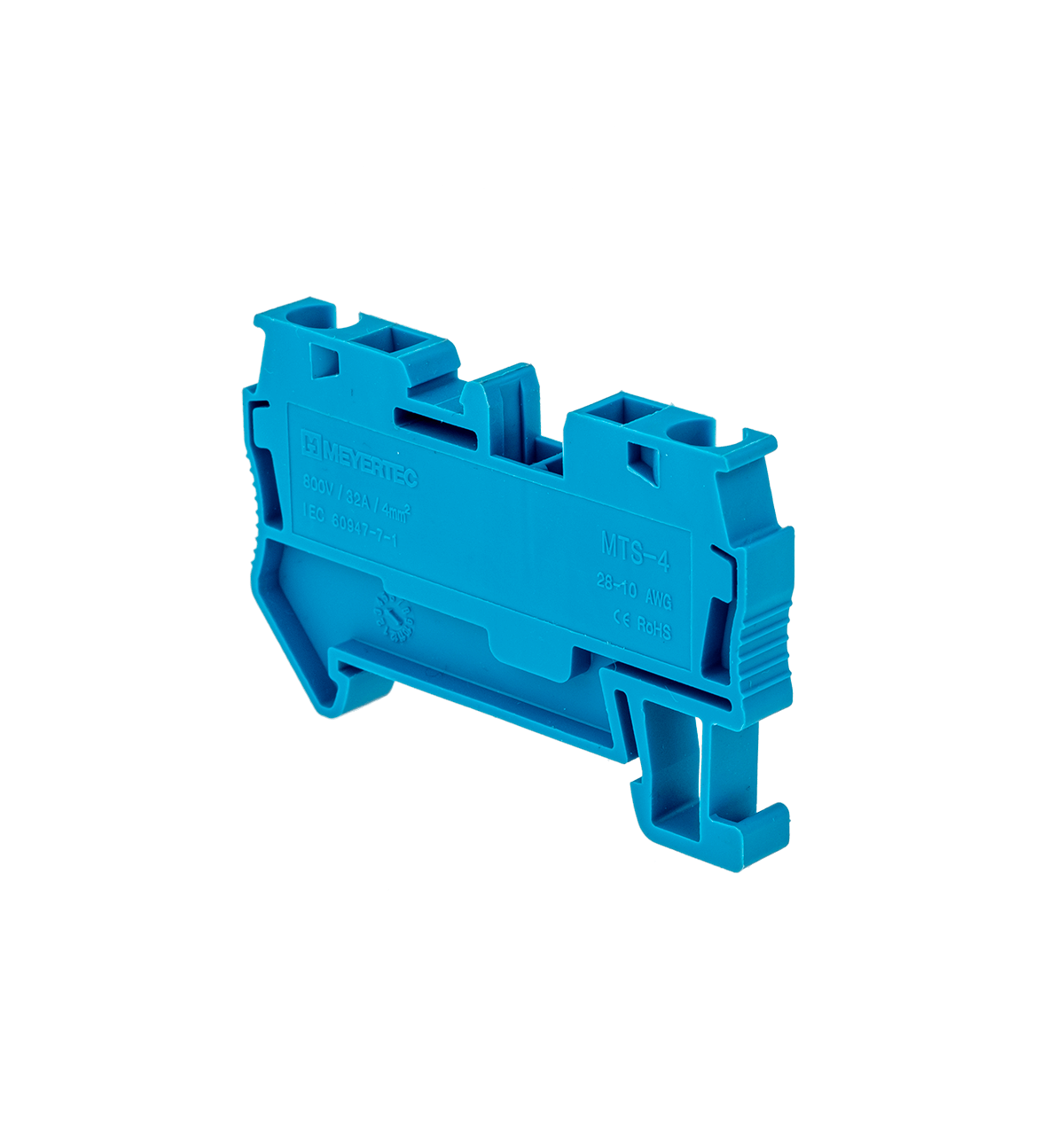 Одноуровневые пружинные клеммы MTS-4BL предназначены для упрощения подключения проводников в шкафах автоматизации, управления и распределения электроэнергии. Клеммы обеспечивают безопасное и надежное соединение проводников сечением 4мм2.
