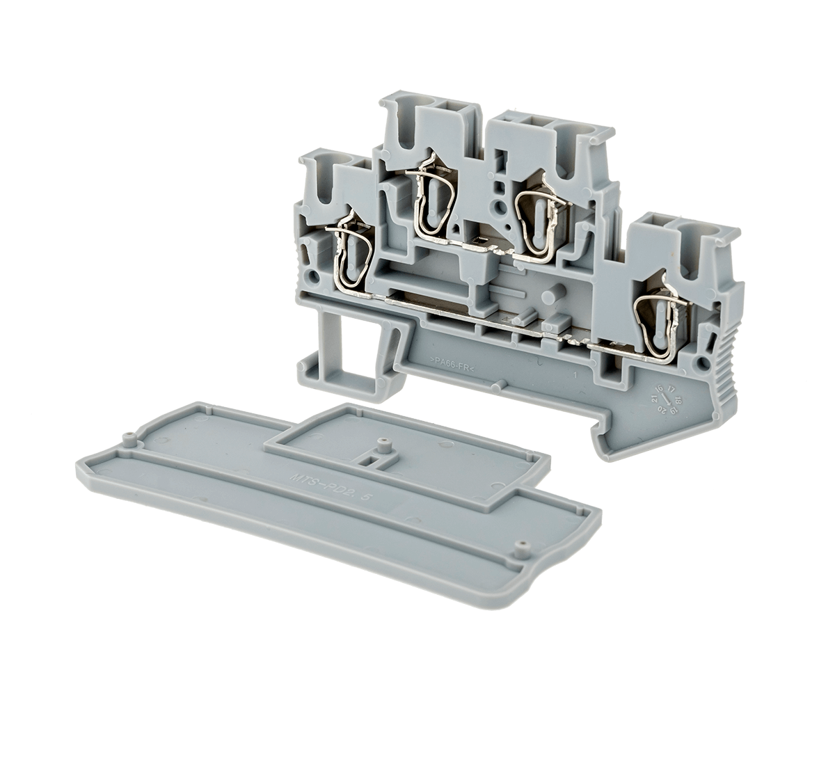 Торцевые заглушки MTS-PD2.5 предназначены для закрытия токоведущей части пружинных двухуровневых клемм сечением 2,5 мм2. Используются для клемм арт. MTS-D2.5.