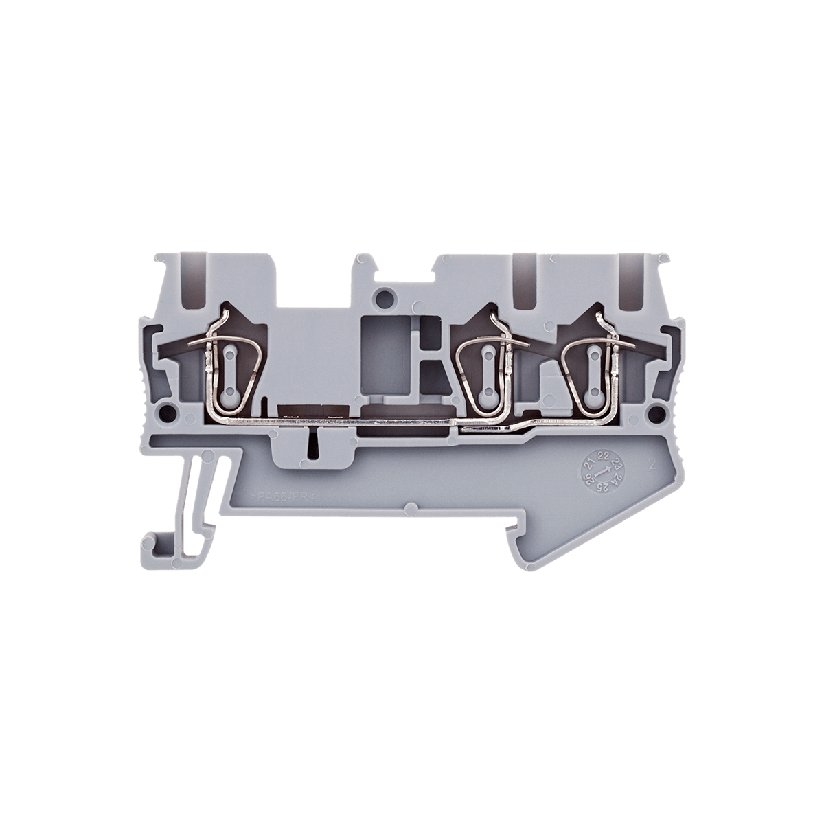 Трехпроводные пружинные клеммы MTS-TO2.5 применяются для разветвления токовых цепей. Данный тип удобен, когда к одной клемме необходимо подключить несколько проводников. В отличие от многоуровневых данные клеммы имеют единую токопроводящую шину на 3 присоединения.