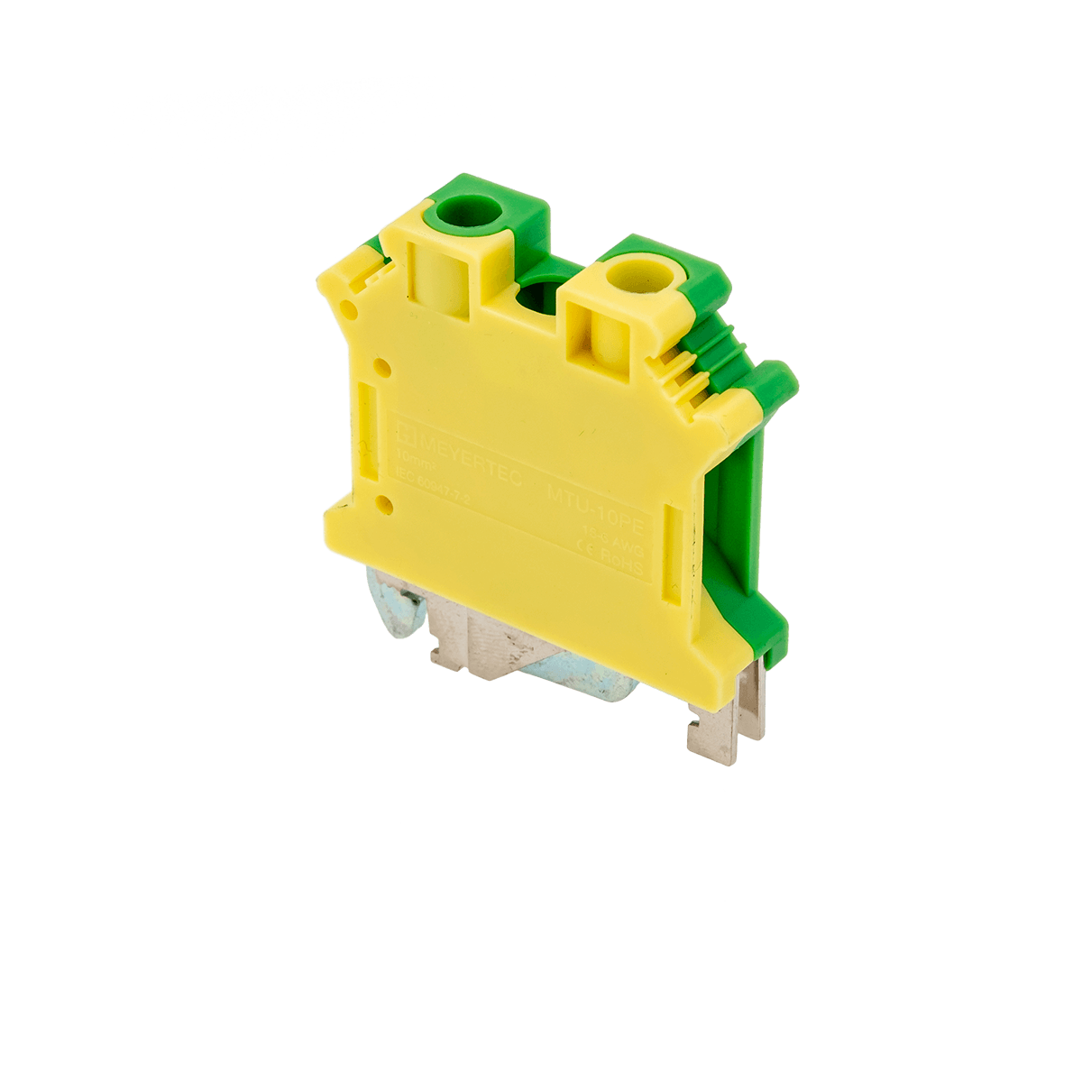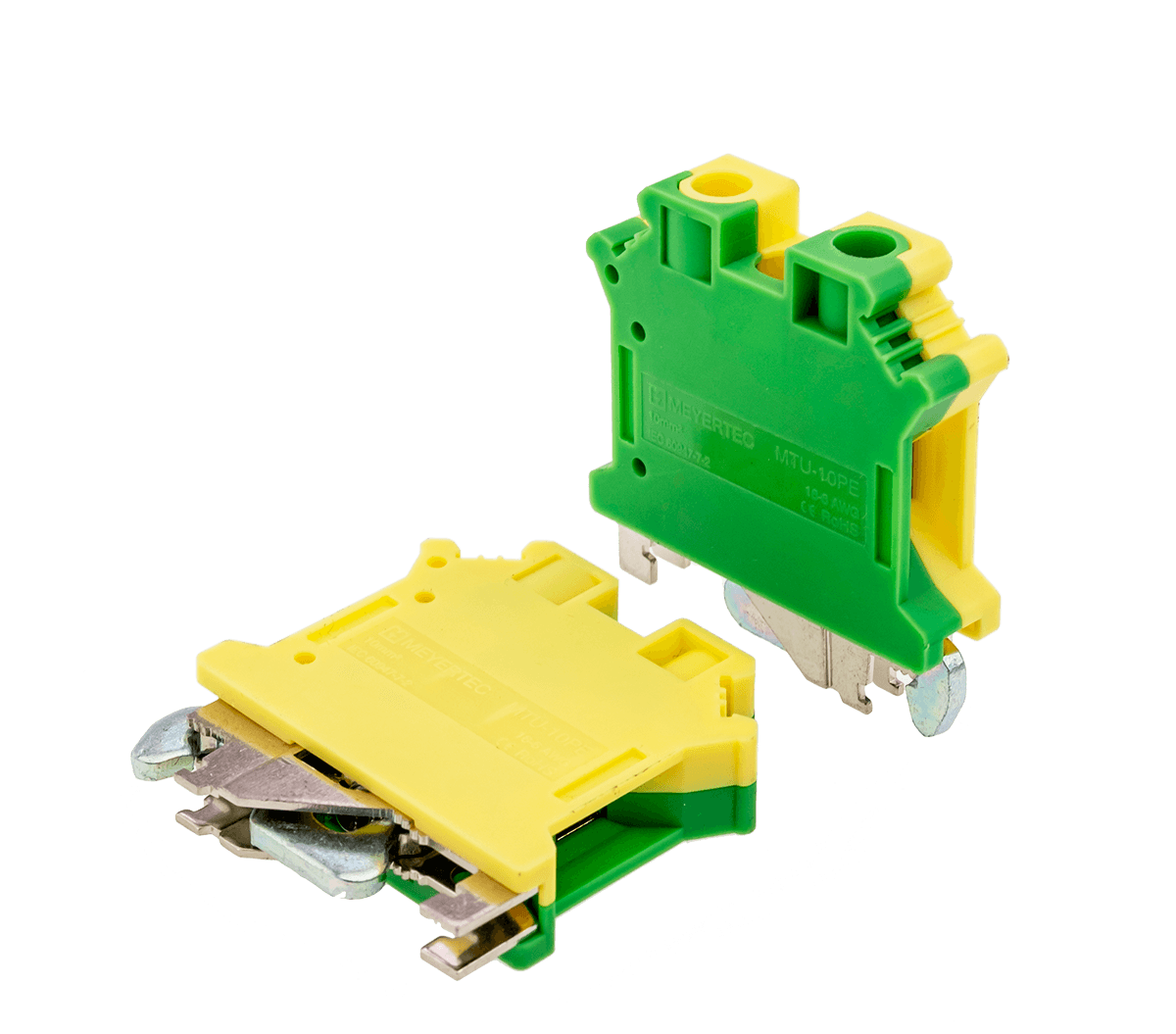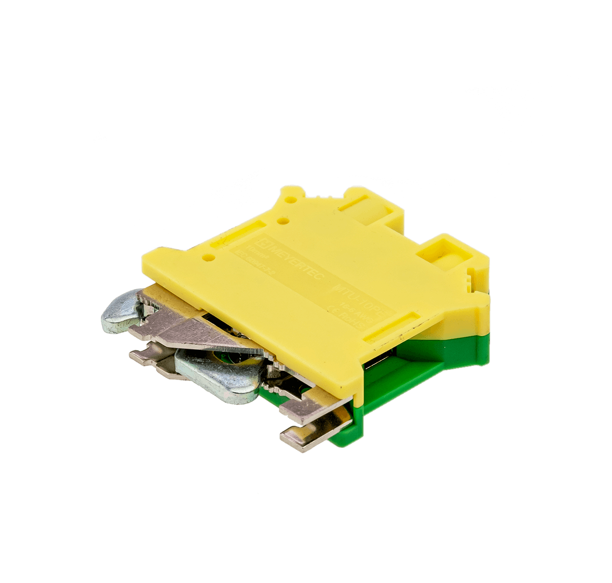 Заземляющие клеммы MTU-10PE обеспечивают заземление проводников благодаря контакту токоведущей шины с DIN-рейкой (при условии заземления монтажной пластины шкафа). Конструкция клемм не требует применения торцевых заглушек. Заземляющие клеммы надежно устанавливаются на DIN-рейке с помощью винта, что позволяет использовать их в качестве торцевых фиксаторов клеммного ряда.