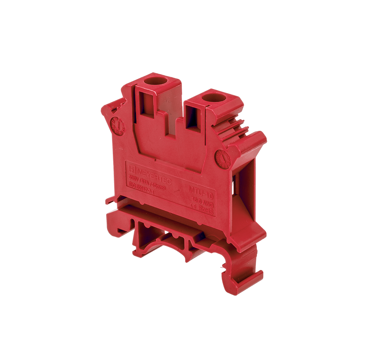 Одноуровневые винтовые клеммы MTU-10 – простой и удобный способ подключения устройств в шкафах автоматики. Клеммы MTU-10 предназначены для проводников сечением 10мм2. Открытую токопроводящую часть клеммного ряда необходимо закрыть торцевой заглушкой. Одноуровневые клеммы имеют одинаковые габаритные размеры для всех сечений, кроме ширины, которая зависит от сечения выбираемого проводника.