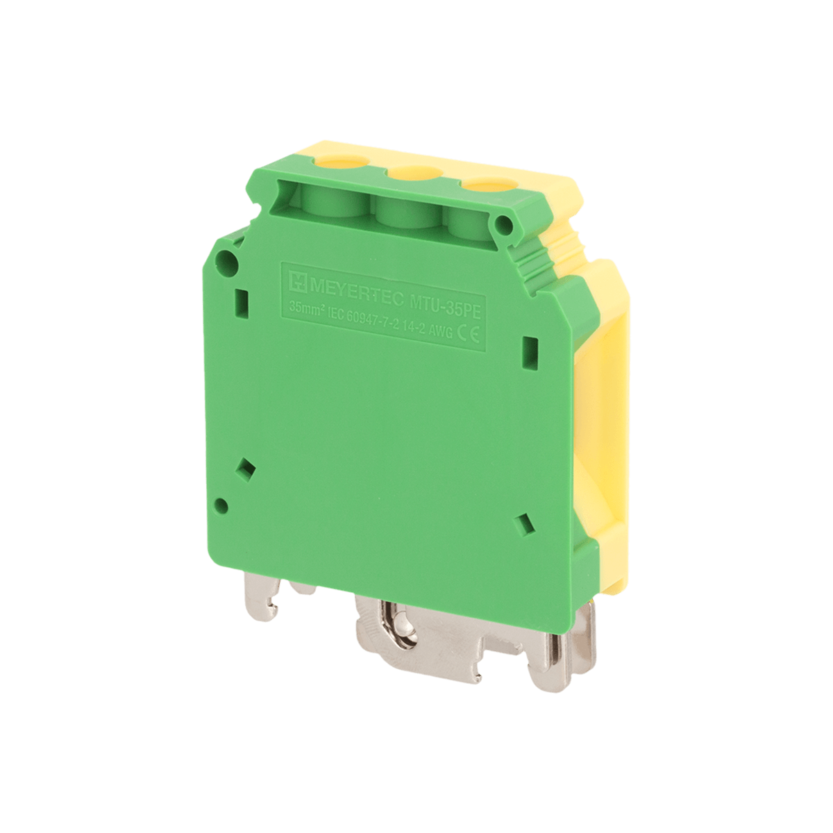 Клеммы «Земля» MTU-35PE обеспечивают заземление проводников благодаря контакту токоведущей шины с DIN-рейкой (при условии заземления монтажной пластины шкафа).
