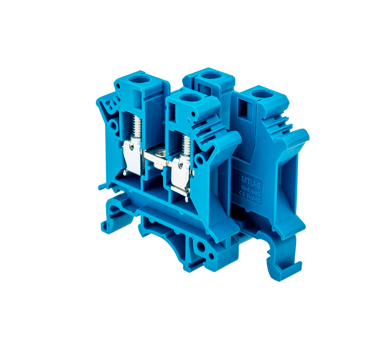 Одноуровневые винтовые клеммы MTU-6BL – простой и удобный способ подключения устройств в шкафах автоматики. Клеммы MTU-6BL предназначены для проводников сечением 6мм2. Открытую токопроводящую часть клеммного ряда необходимо закрыть торцевой заглушкой. Одноуровневые клеммы имеют одинаковые габаритные размеры для всех сечений, кроме ширины, которая зависит от сечения выбираемого проводника.