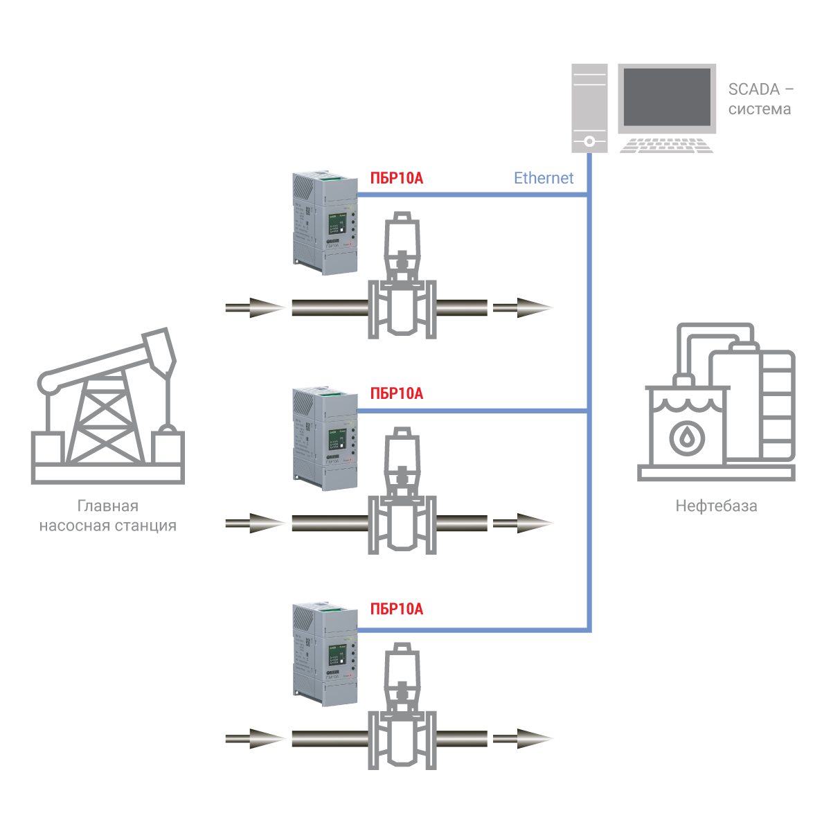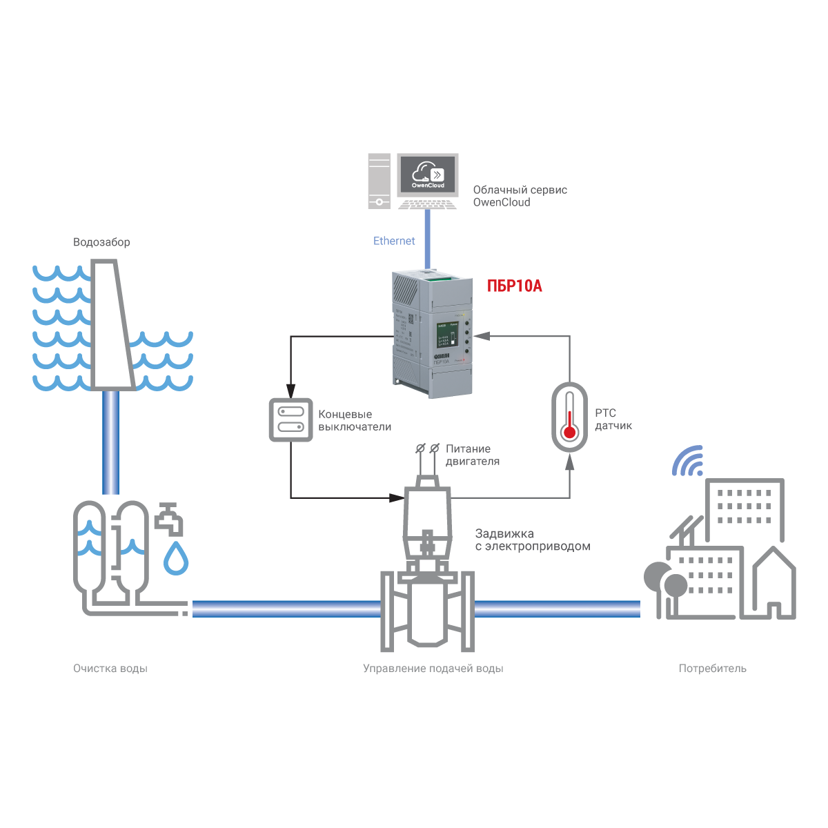 При получении команд на изменение положения арматуры прибор определяет необходимое направление движения арматуры и соответствующим образом коммутирует реле реверса. Далее производится плавный пуск электродвигателя арматуры посредством изменения угла управления силовыми симисторами (время пуска 100 мс). После разгона электродвигателя подключаются байпасные реле и переводят двигатель на работу от сети для снижения тепловых потерь в приборе. При достижении арматурой требуемого положения напряжение с электродвигателя снимается, и арматура останавливается. Положение арматуры контролируется по концевым выключателям и времени или по аналоговому датчику положения.