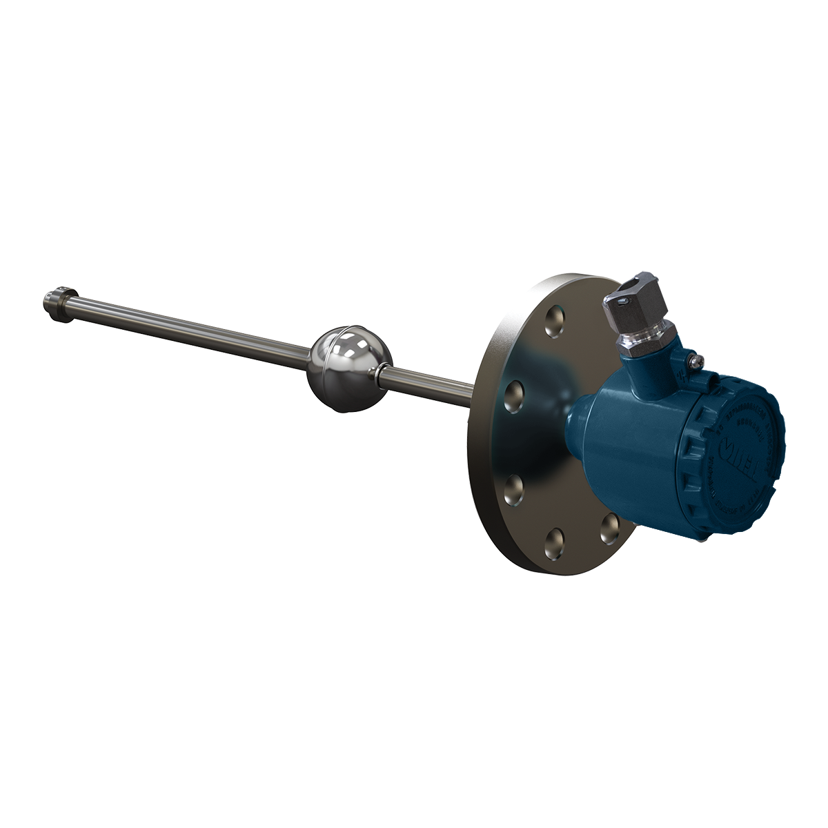 Поплавок с постоянным магнитом перемещается вместе с уровнем жидкости по штоку, в котором находится матрица герконов и сопротивлений. Под воздействием магнитного поля происходит срабатывание герконов, цепь работает по схеме трёхпроводного потенциометра. При изменении уровня жидкости прямо пропорционально изменяется выходное сопротивление датчика, преобразуемое в цифровой код для передачи данных по сети RS-485 (протокол Modbus RTU).