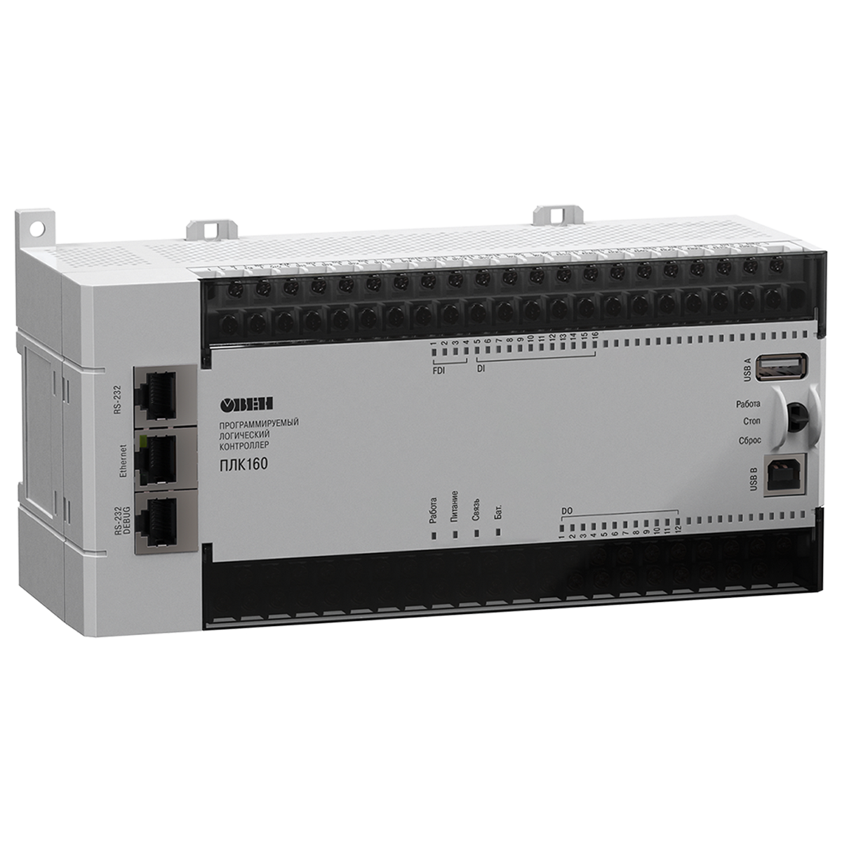 ОВЕН ПЛК160 [М02] – линейка программируемых моноблочных контроллеров с дискретными и аналоговыми входами/выходами на борту для автоматизации средних систем.
