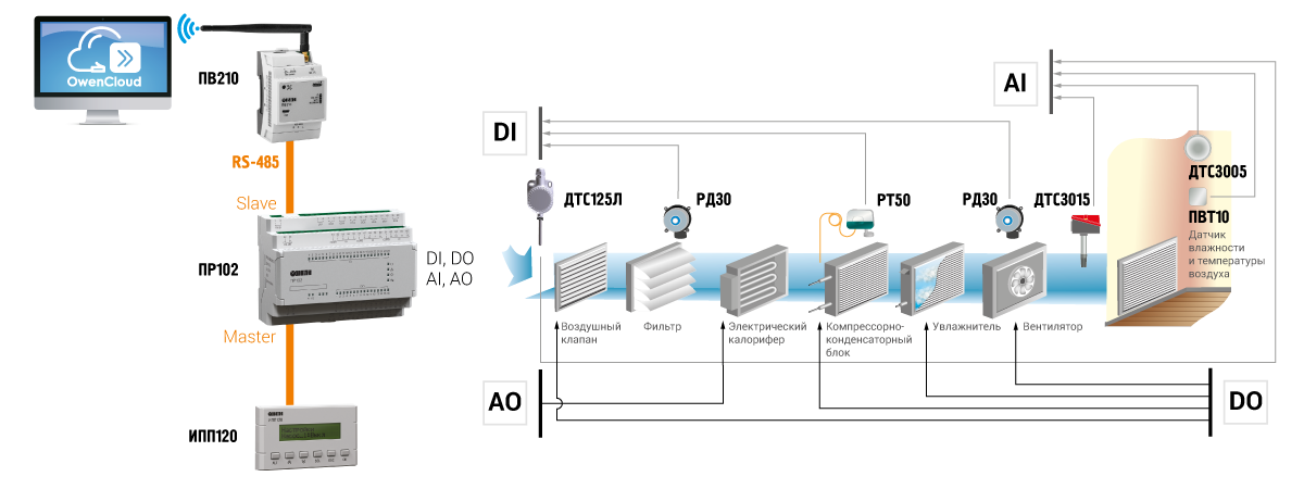 ОВЕН ПР102 – программируемое реле для управления вентиляцией, отоплением, насосами и другим оборудованием. Главным преимуществом прибора является широкий функционал и высокая плотность каналов ввода/вывода.