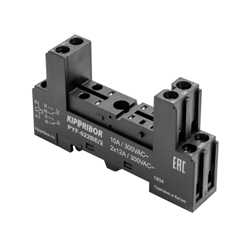 Монтажные колодки KIPPRIBOR PYF-012BE, PYF-022BE, PYF-112BE, PYF-122BE для 1- и 2-контактных промежуточных реле предназначены для установки на DIN-рейку 2-контактных промежуточных реле KIPPRIBOR серии MR и 1-контактных промежуточных реле различных производителей. Изготавливаются из негорючего, прочного и упругого материала (ПА66 + графит), устойчивого к ошибкам при монтаже и эксплуатации.