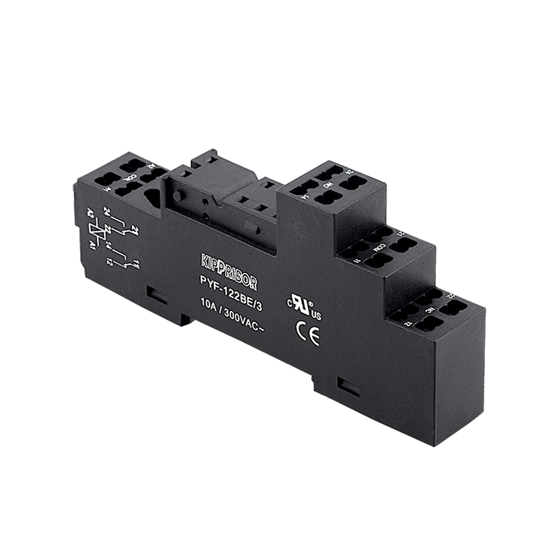 Монтажные колодки KIPPRIBOR PYF-012BE, PYF-022BE, PYF-112BE, PYF-122BE для 1- и 2-контактных промежуточных реле предназначены для установки на DIN-рейку 2-контактных промежуточных реле KIPPRIBOR серии MR и 1-контактных промежуточных реле различных производителей. Изготавливаются из негорючего, прочного и упругого материала (ПА66 + графит), устойчивого к ошибкам при монтаже и эксплуатации.