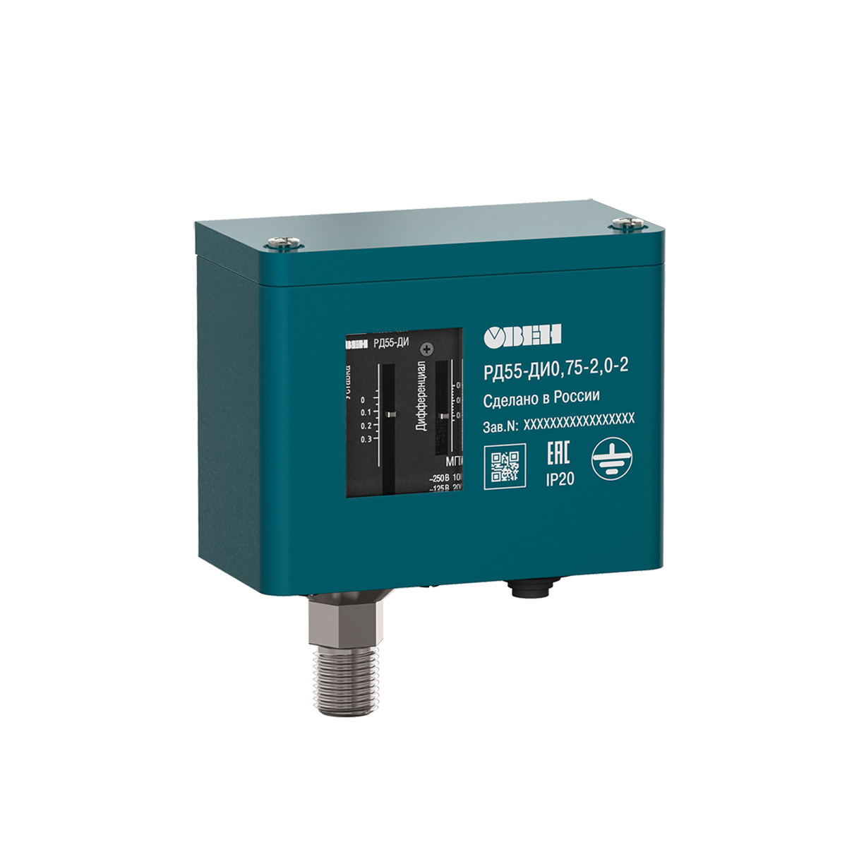 РД55-ДИ представляет собой механическое реле избыточного давления. Реле предназначено для управления аварийной сигнализацией путем переключения электрической цепи при падении давления в системе. Порог срабатывания реле и дифференциал настраивается пользователем.