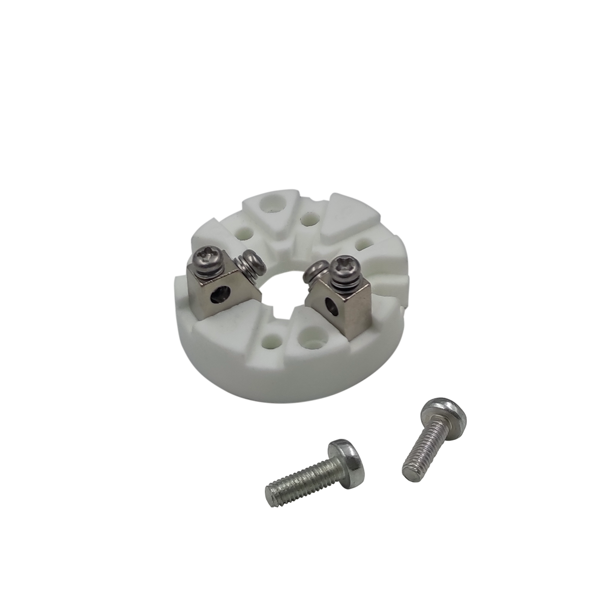 Керамический клеммник D42 – это керамическая колодка с расположенной на ней двумя контактами из никелированной латуни для возможности коммутации чувствительного термоэлемента с удлиняющим кабелем.